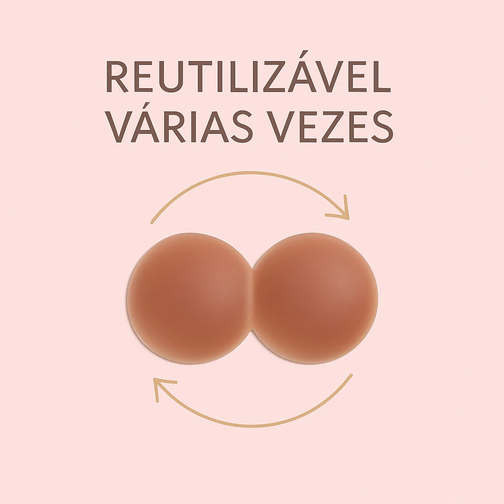 Descubra a liberdade de ficar sem sutiã — com o Curvia, o protetor que adere ao calor natural da sua pele, é invisível sob qualquer roupa e totalmente reutilizável.